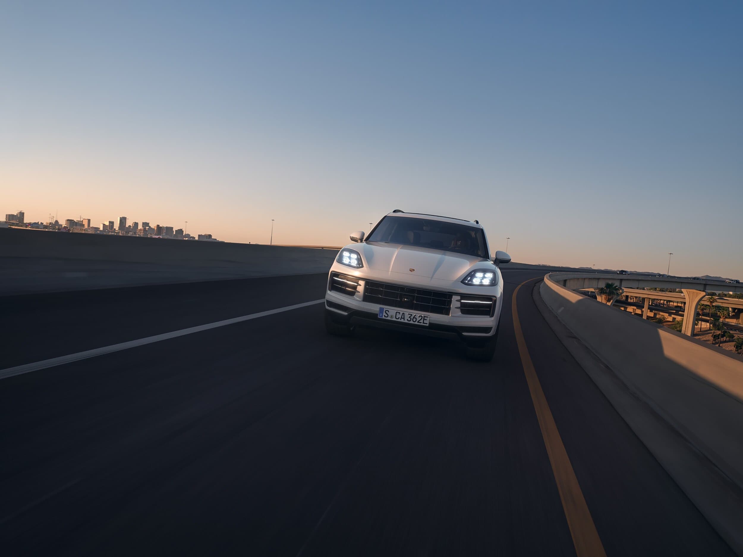 Porsche Cayenne E-Hybrid: Elevate your new Porsche SUV driving experience with hybrid power and plenty of personality. Reach 60 MPG in 3.5 seconds in the Cayenne E-Hybrid and use a maximum of 729 horsepower for late-night stops at the Neon Retro Arcade and Old Town Monrovia.