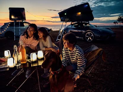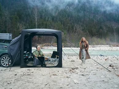Experience unforgettable outdoor adventures: with the inflatable canopy tent from Porsche. Set up your home-from-home, anywhere.